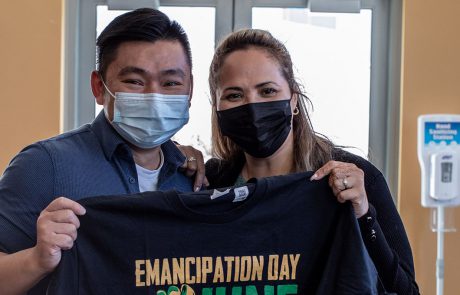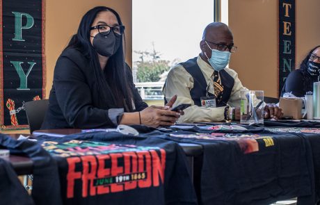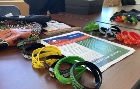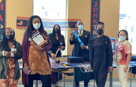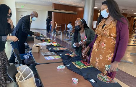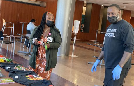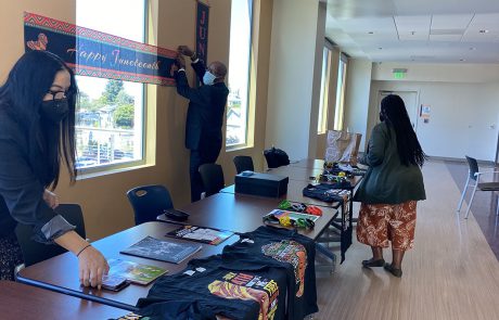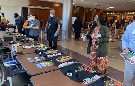 This week Alameda Health System (AHS) commemorated Juneteenth at the Wilma Chan Highland Hospital campus cafeteria. On Monday, June 13 the affinity group Black Employees and Allies Network (BEAN) hosted an informational table with giveaways and a raffle.