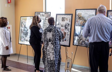 On Tuesday, June 14 employees were treated to an engaging visual history of the Black experience told in a series of art collages created by AHS Chaplain Betty Clark. The collages illustrate African Americans’ extraordinary contributions to American history, arts and culture. It is also a powerful visual representation of the Black experience from the roots of slavery to the prejudice, poverty and systemic racism that are still woven into the fabric of American life today.